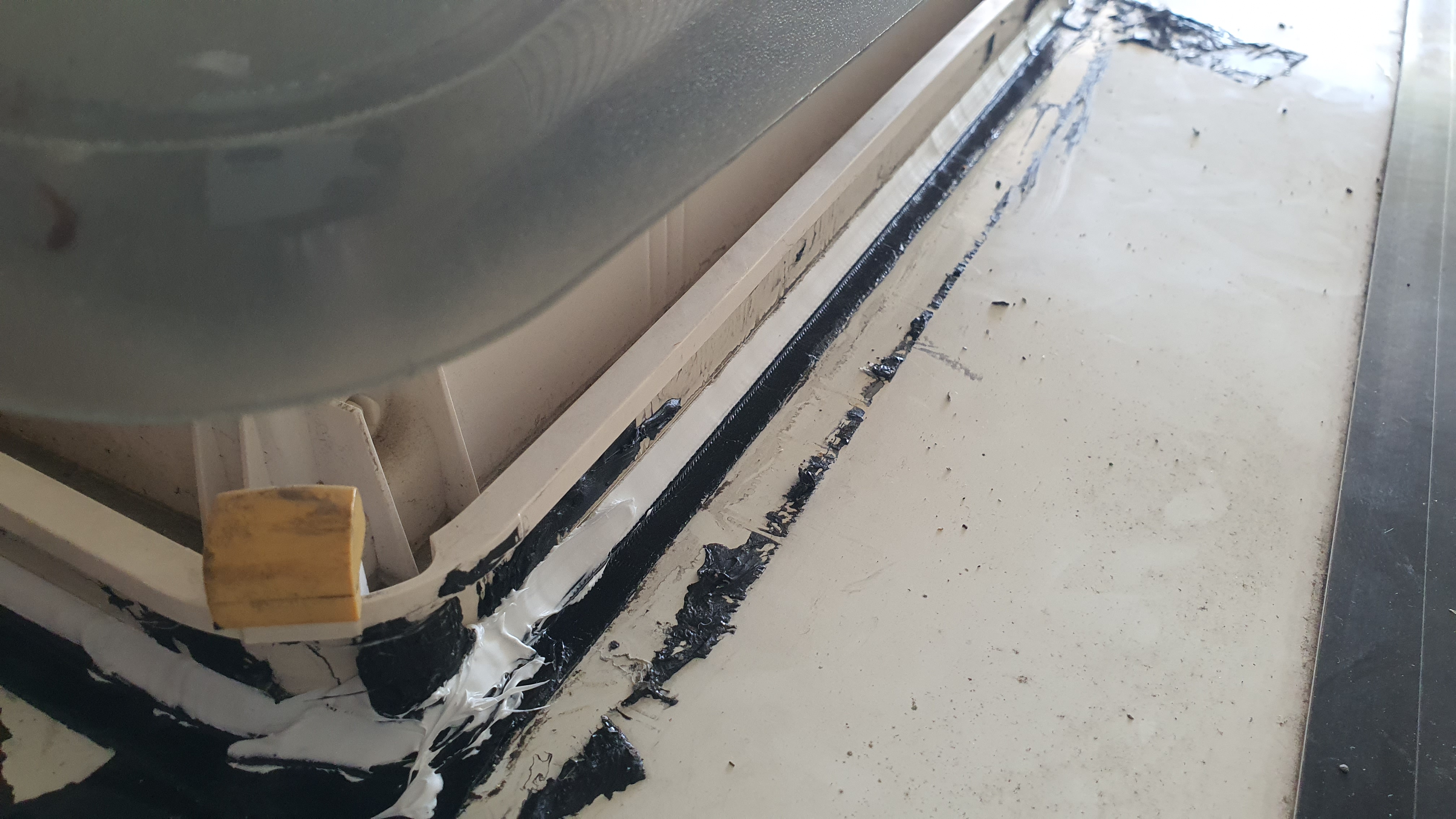 카라반을 수리하면서 작업자들의 마인드에 여러번 놀란다. 내가 제작자였다면 헤키창 구멍을 뚫고 당연히 양면 부틸(방수테잎으로 구멍과 헤키창 사이를 최대한 메우려 노력했을것 같다. 근데,, 이 제품은 그냥 꼽아두었다. 그리고 외부에 실리콘을 한번 바른게 끝.