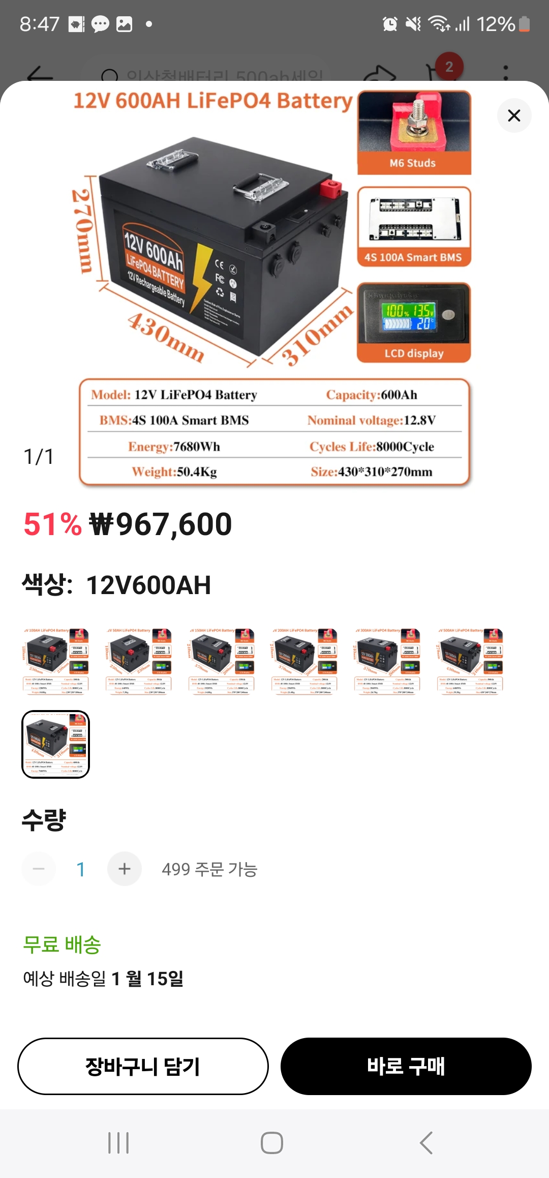 그러다가 가장 이상적인 사이즈의 600ah 짜리 파뱅을 발견했다. 가격은 96만원대, 높이 270이 가능할까? 한번 재봐야할것 같다. 가로 430은 안될것 같고, 돌려서 가로 310에 세로 430을 노려봐야겠다.