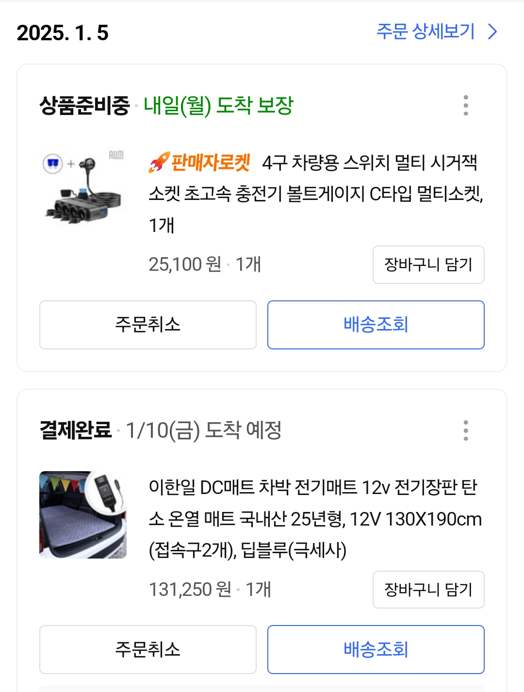 쿠팡에서 DC 전기매트와 4구 시거잭 소켓을 구매했다. 전기매트가 이렇게 비싼줄 몰랐다.