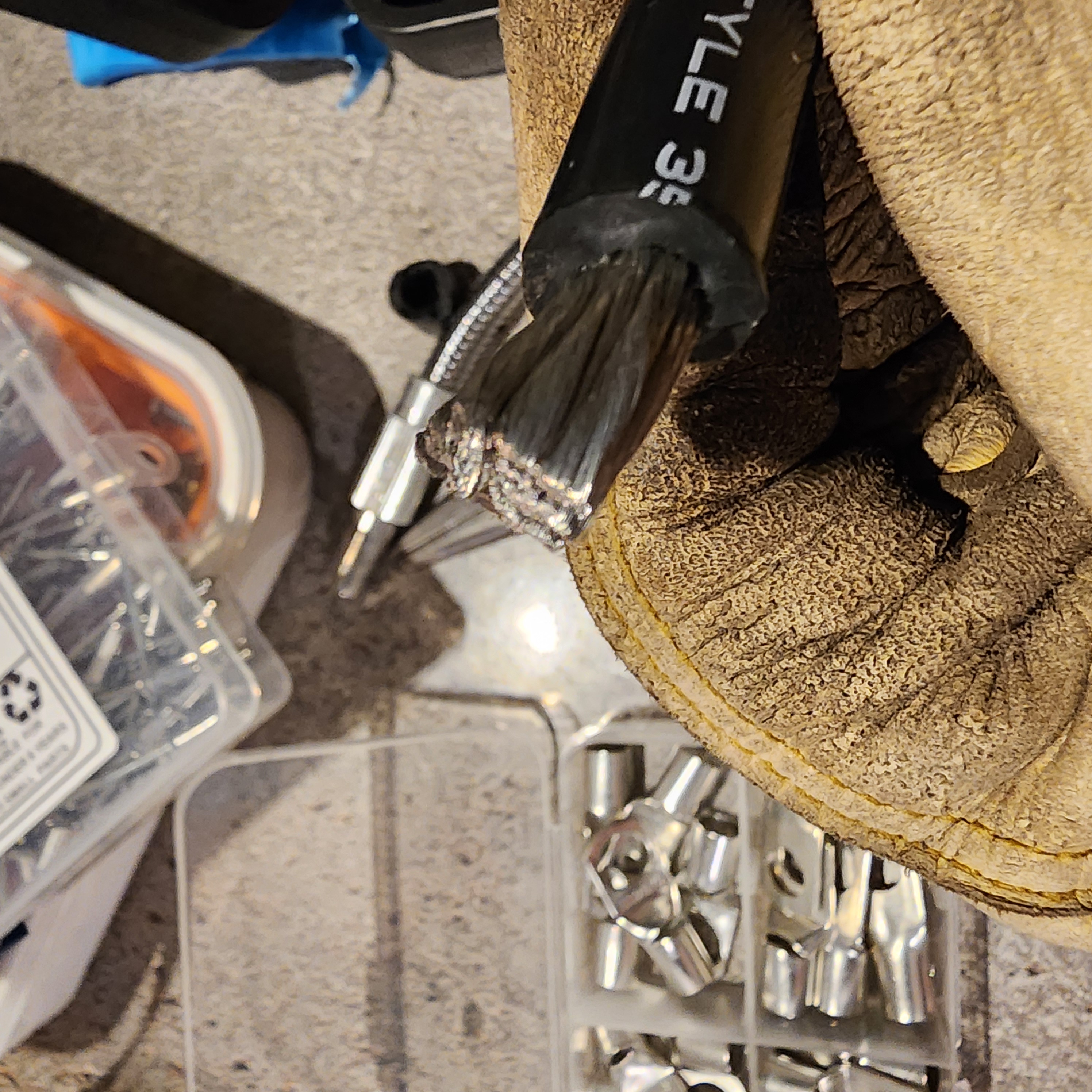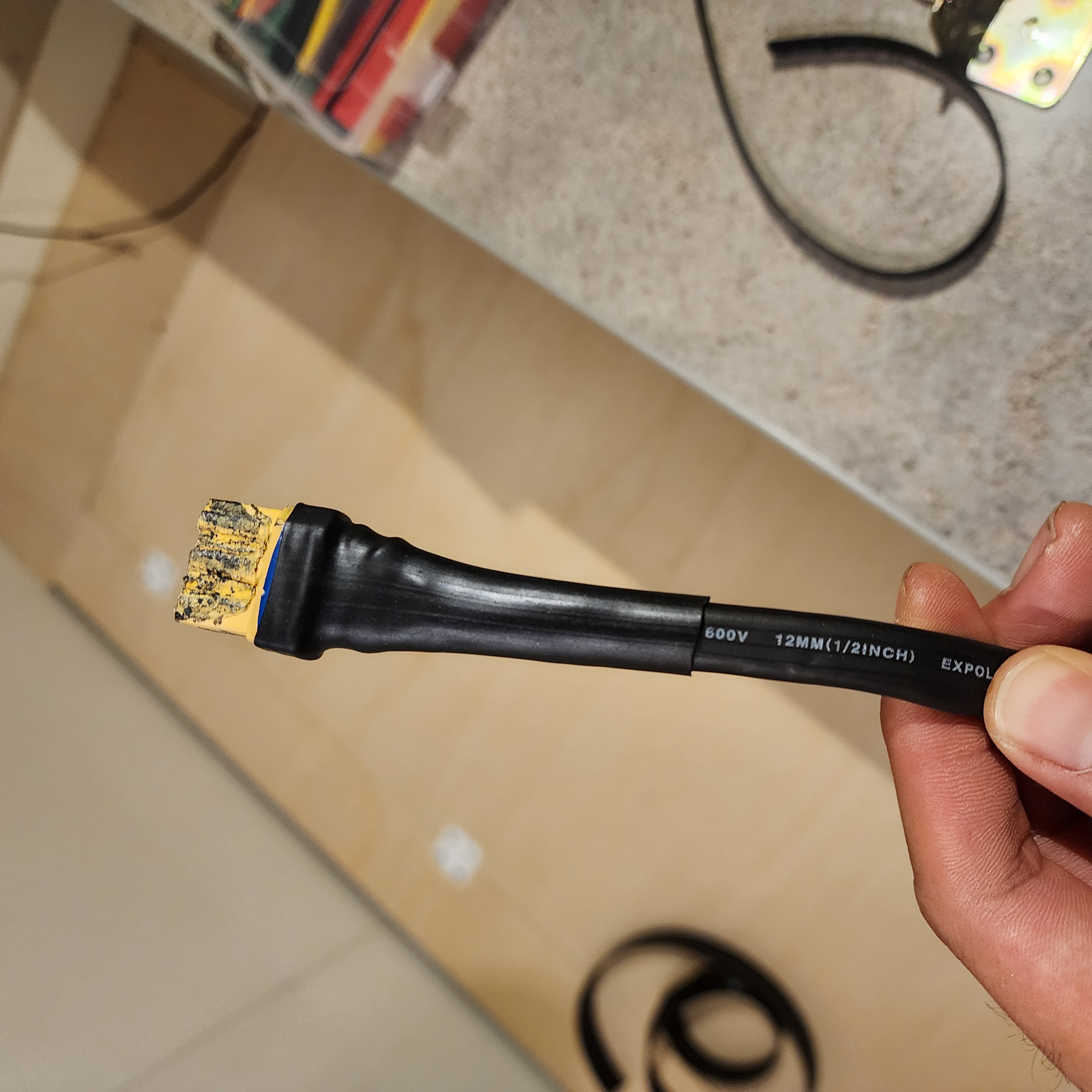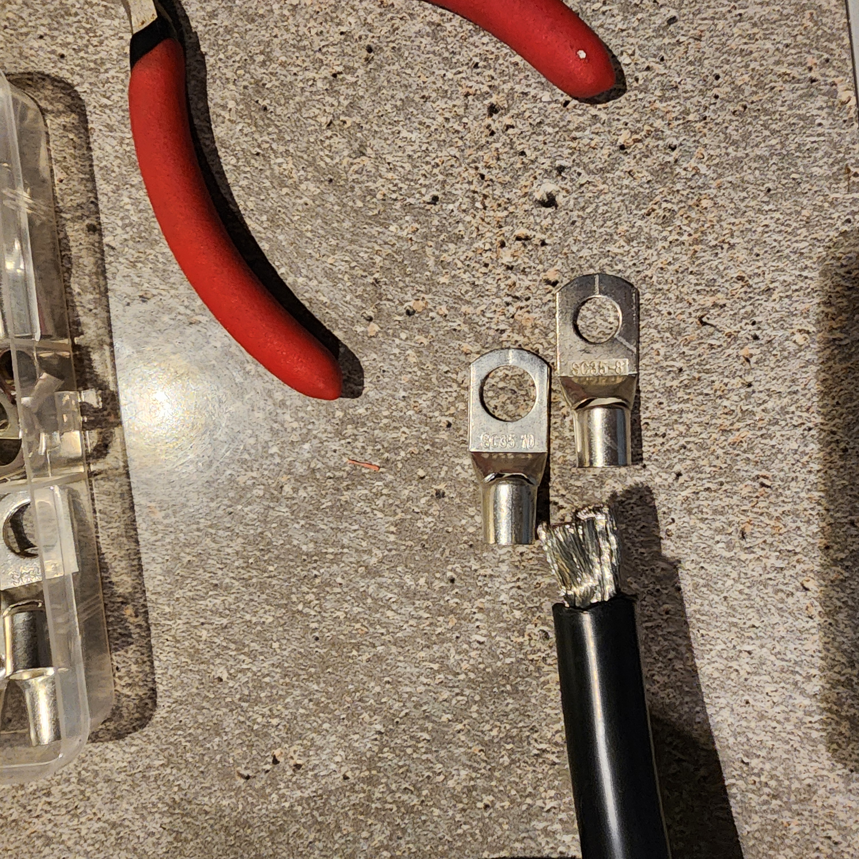 분명히 35SQ를 구입했는데, 왜 이렇게 작을까, 도저히 구경이 안맞을것 같아서 작업을 포기했었다. 그리고 2AWG 메인선을 컷팅했기때문에 에어컨도 꺼졌다. 밤 11시가 다됐는데 집에가야하나,,,