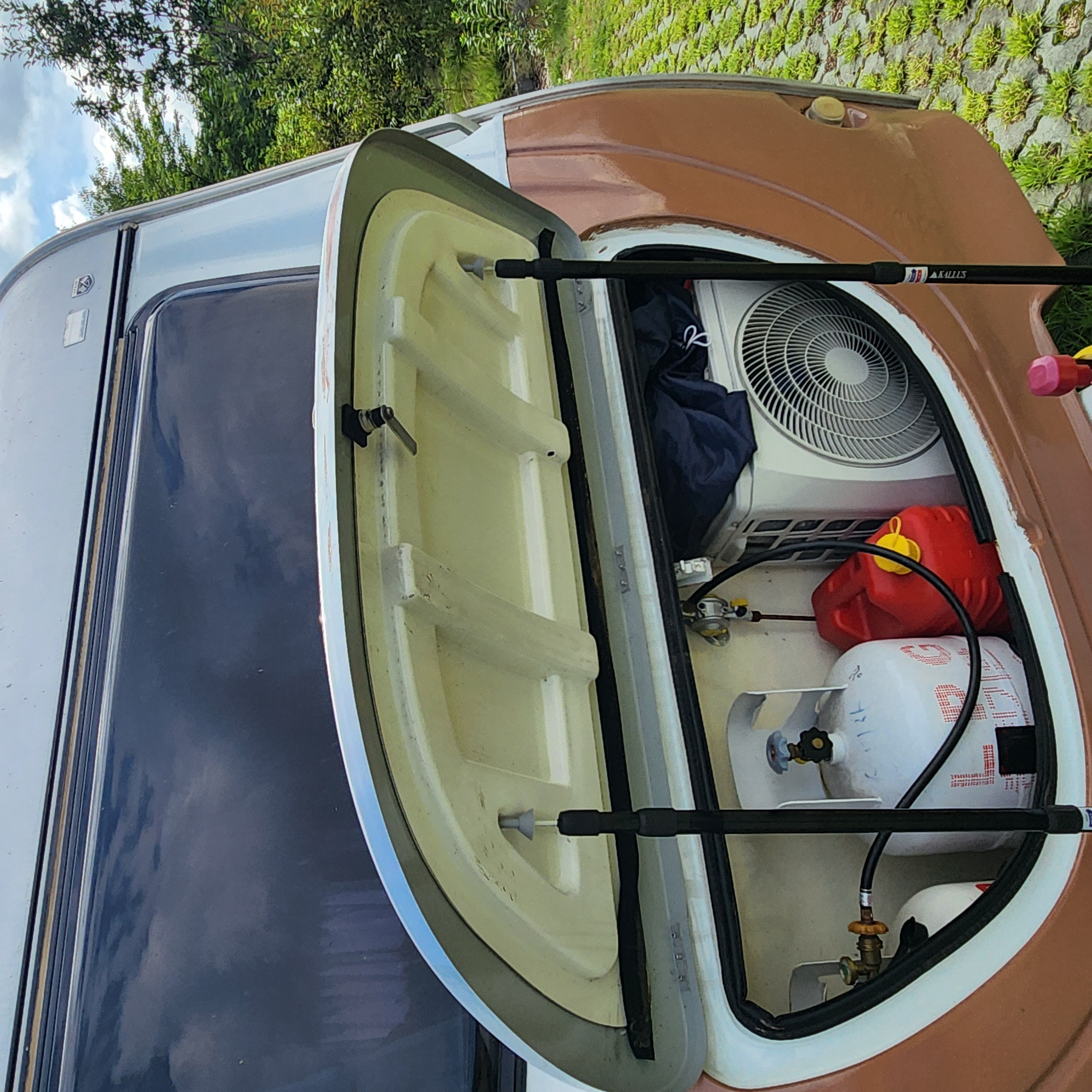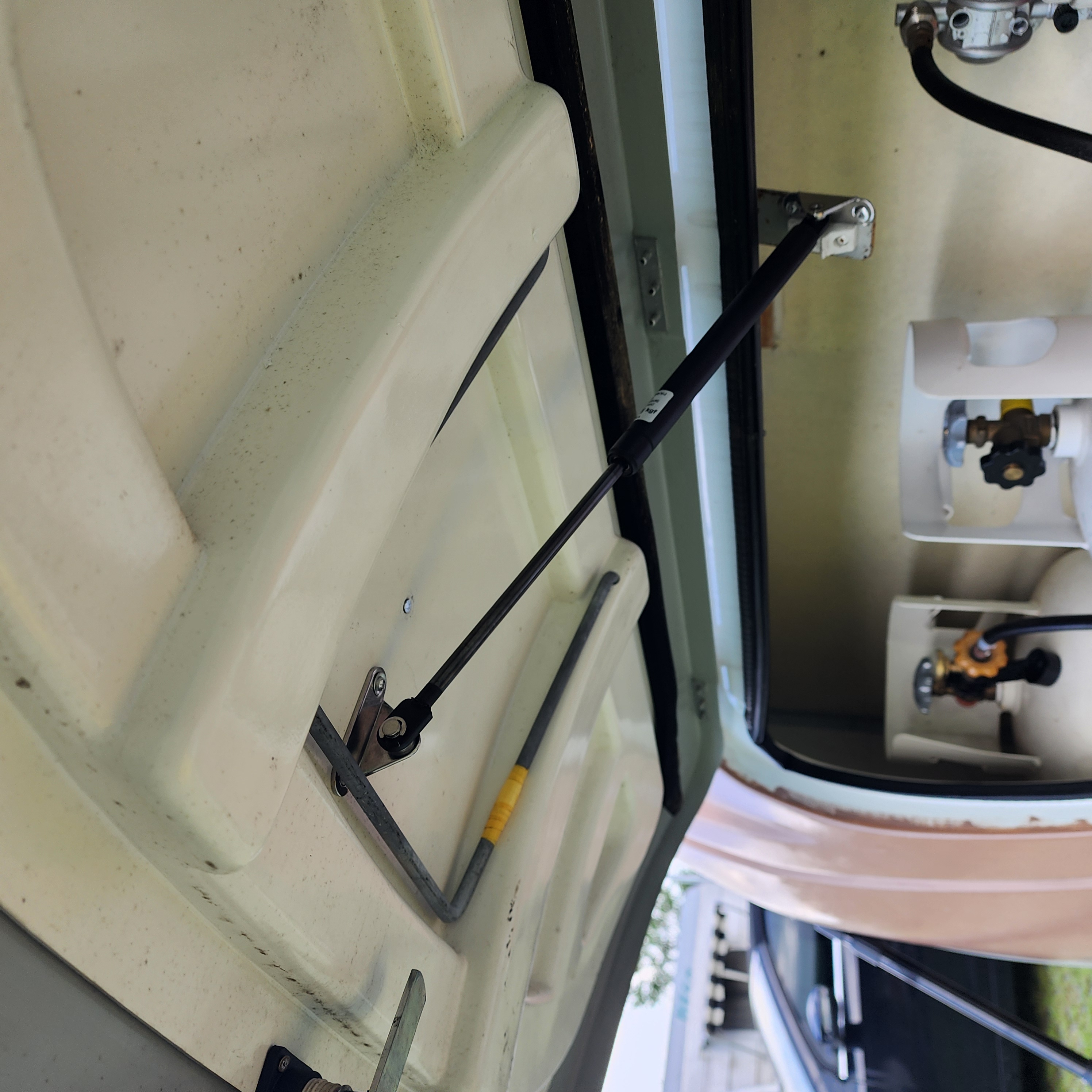 울릉도 노지 투어를 준비하는 과정에서 에어컨을 가동할라면 카라반 전면 수납함 도어를 상시 열어두어야 하는데, 울릉도에 강풍을 견딜 힘좋은 지지대가 필요했다. 주문한 쇼버( 500mm)가 왔는