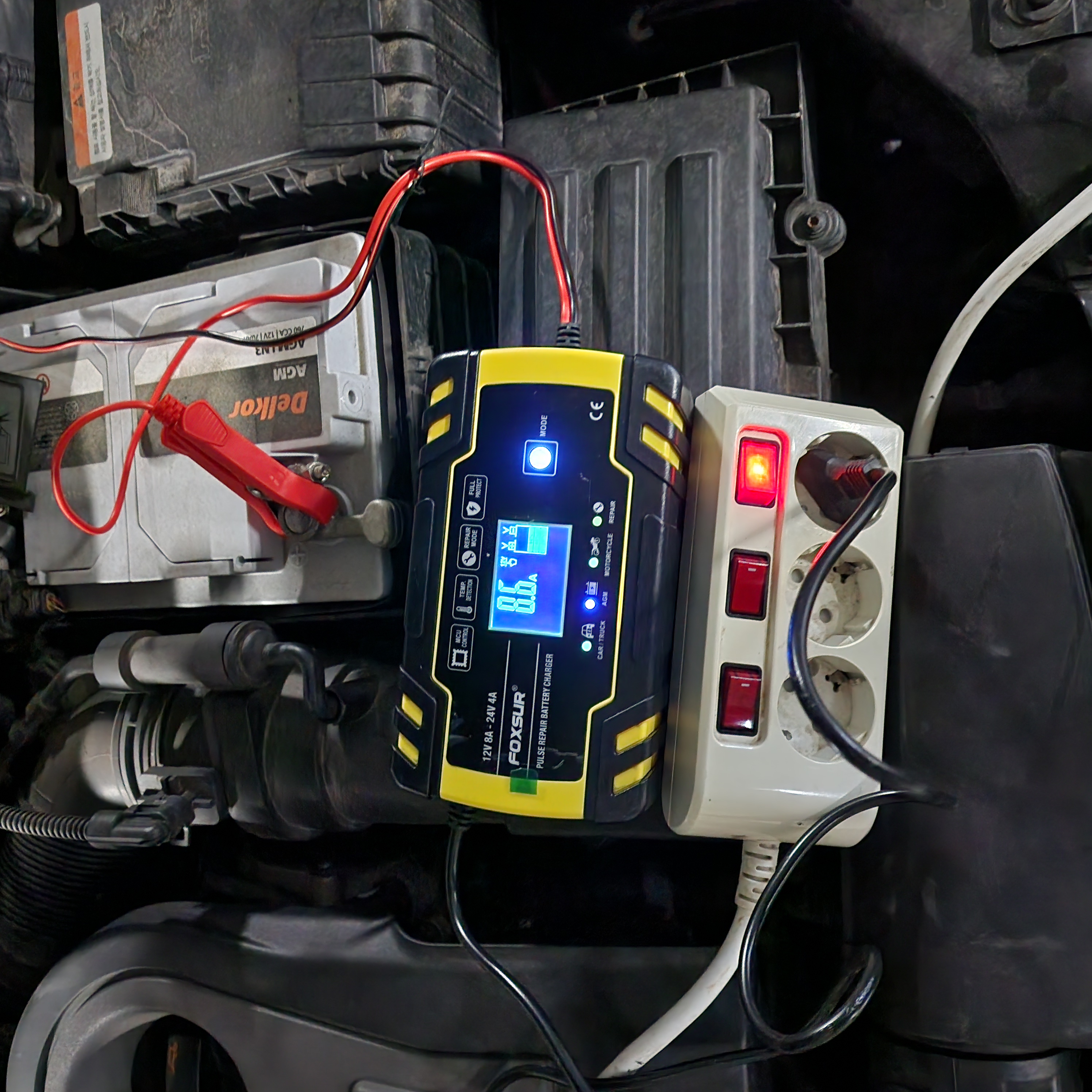 비가 너무 많이 와서 도저히 작업을 할 수 없어서, 아쉬움 마음을 뒤로하고 주차장에 차를 대고 집에올라가려다 문득, 요즘 내 차량 베터리가 극도로 쇠약해진것을 느끼고, 베터리 충전기를 가져다가 물려놨다.