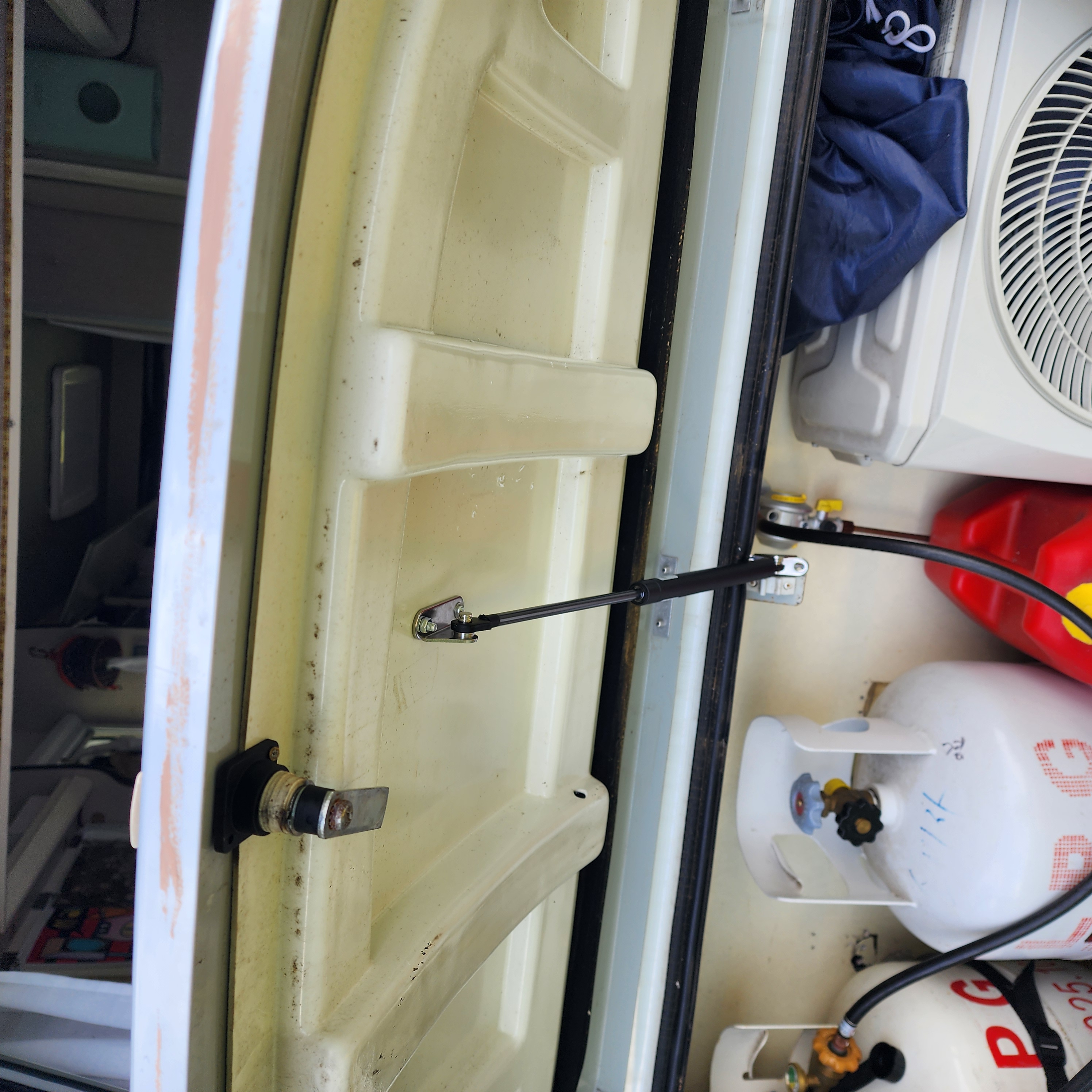 시작부터 끝까지 너무나도 힘들었던 가스쇼버 장착작업, 창의성도 필요했고, 인내심도, 그리고 뭐 이렇게 필요한 장비들이 많은건지,, 어쨌든 울릉도 떠나기전 에어컨을 돌리려면 수납함이 열려야하는데, 울릉도 강풍에도 끄떡없을 가스쇼버를 설치해서 마음을 놓을 수 있게 됐다.