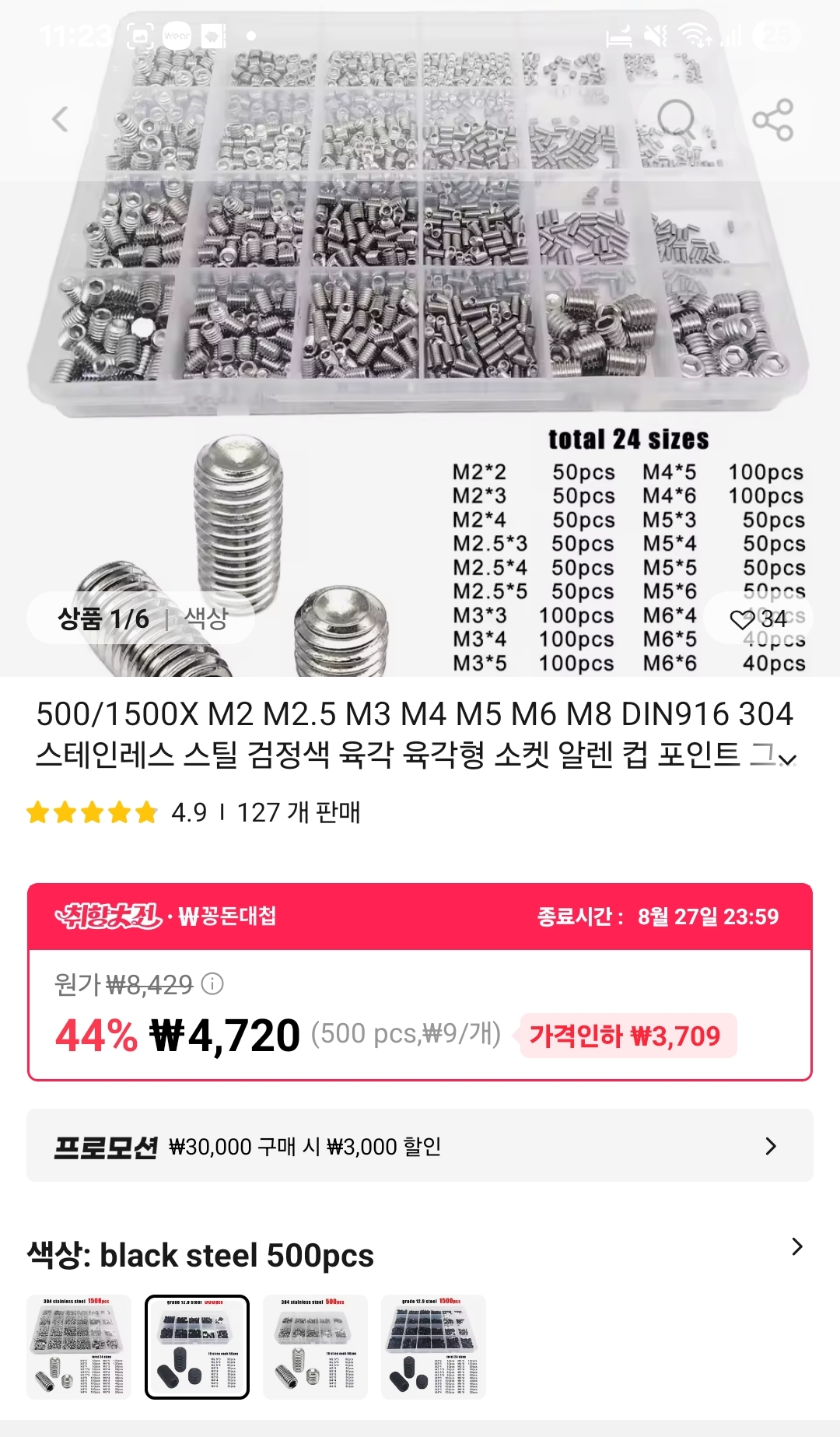 사이즈는 M5라는 확신이 들지만,, 혹시몰라서 M3, M4, M5, M6를 야무지게 구입했다. 왜 국산을 샀냐면,, 정밀가공은 우리나라가 최고니깐 ㅎㅎ