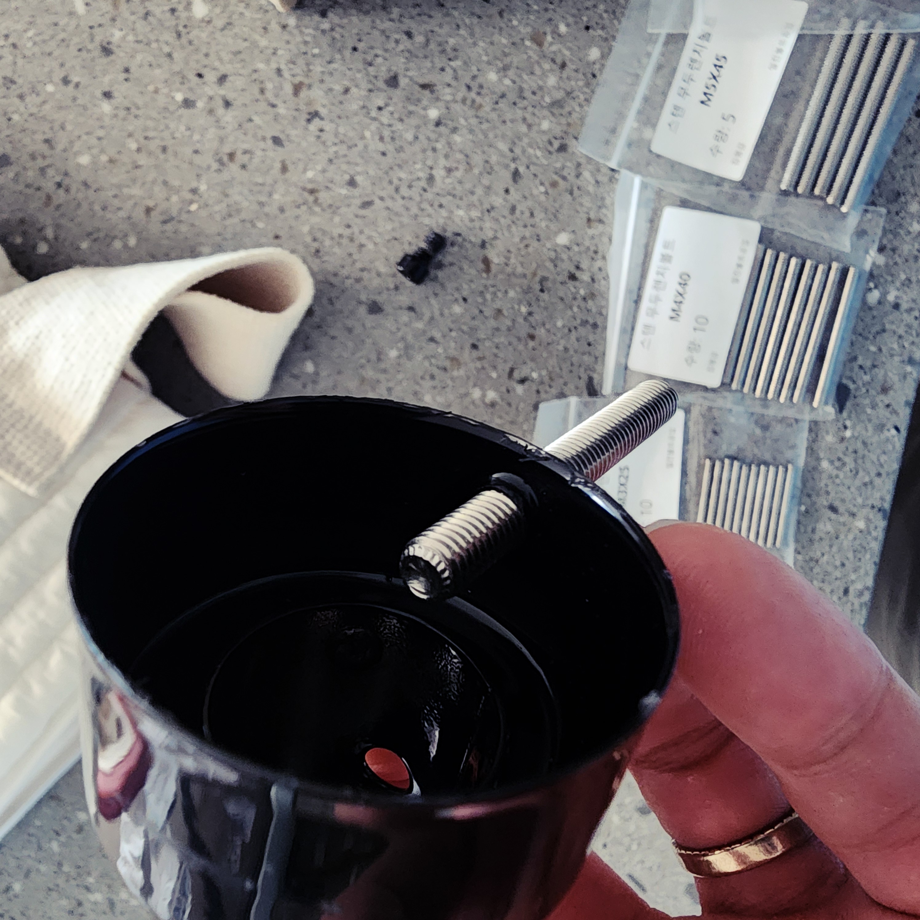 금방 해결할 줄 알았는데 30분을 낑낑대서 결국 M5 무두 볼트를 우겨넣었다. 기적이었다.