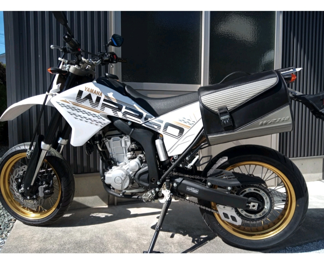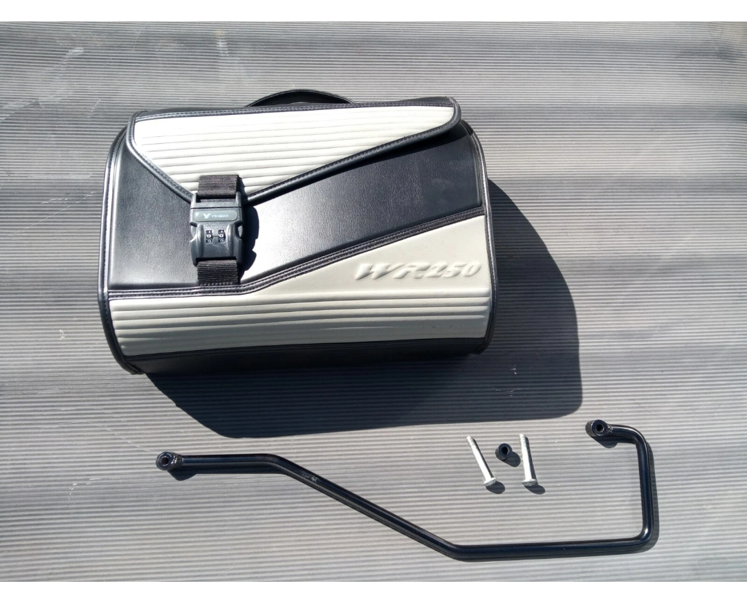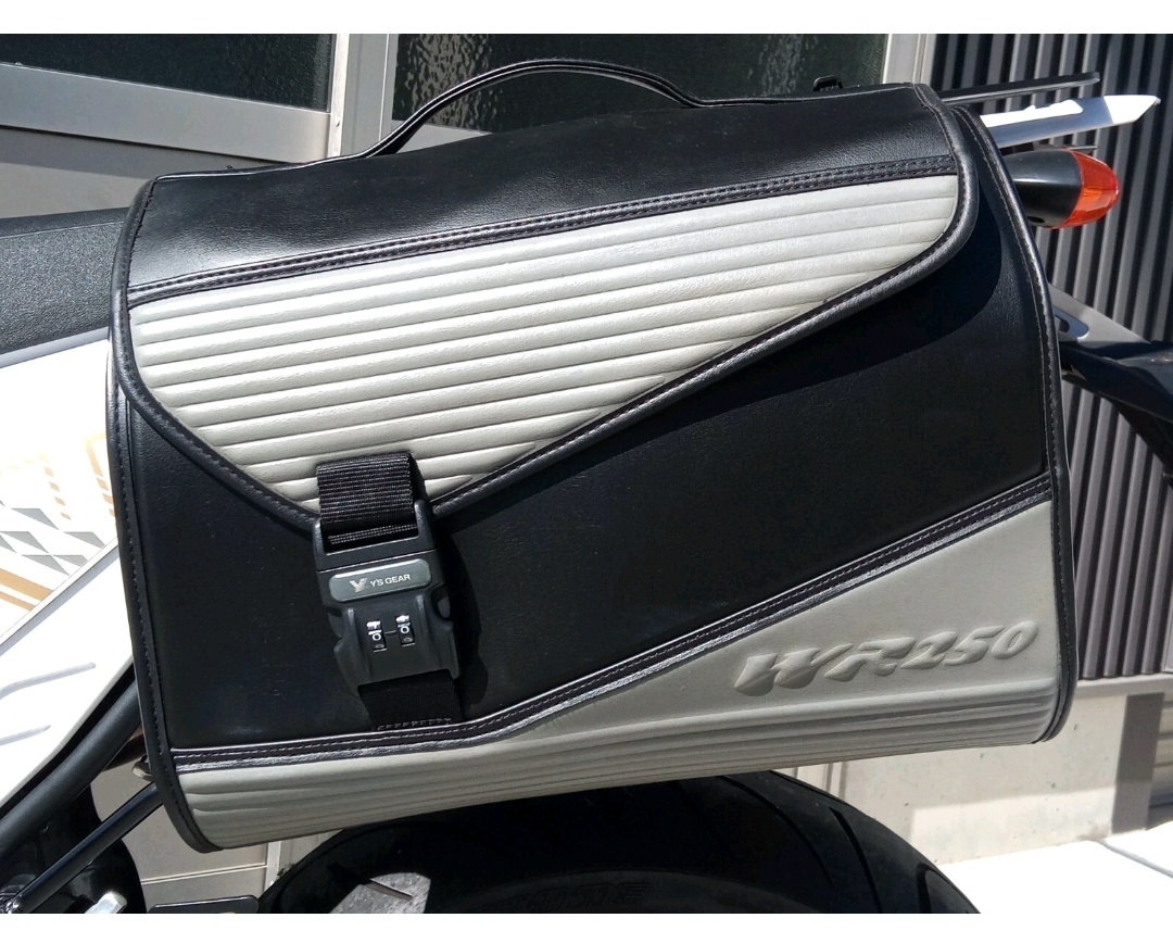 작년에 구입을 망설이면서 이 제품의 히스토리를 좀 알아봤는데, 야마하 순정 굿즈를 판매하는 일명 와이즈기어 브랜드 정발 제품이다. 아마도 WR에 이렇게 어울리지 않게 가방을 제작한 것을 보면, 아래 사진의 흰색 카울바이크 전용으로 별주 제작된 녀석이 아닐까 싶다. 어쨌든 내 떠바리에는 전혀어울리것 같지도 않고 가격도 너무 비싸서 작년에는 포기했었는데, 요즘 떠바리로 라이딩을 다니다보면, 무언가의 짐을 잠깐 꺼낼때, 4단 5단 6단으로 무언갈 풀어야하는 그 과정이 너무 귀찮아서 이런 간단한 형식의 새들백이 없나하고 고민하던중, 이 녀석을 발견한것.