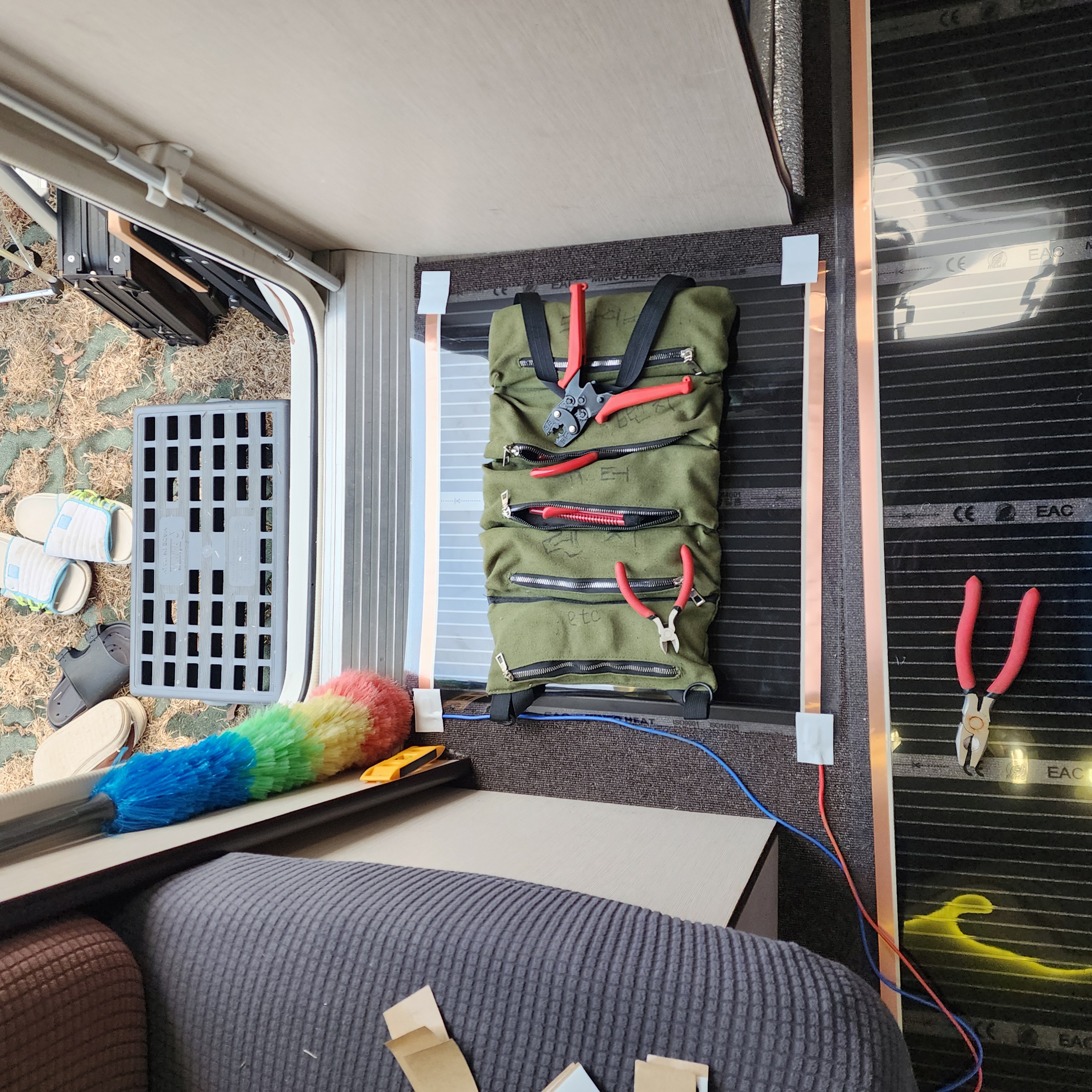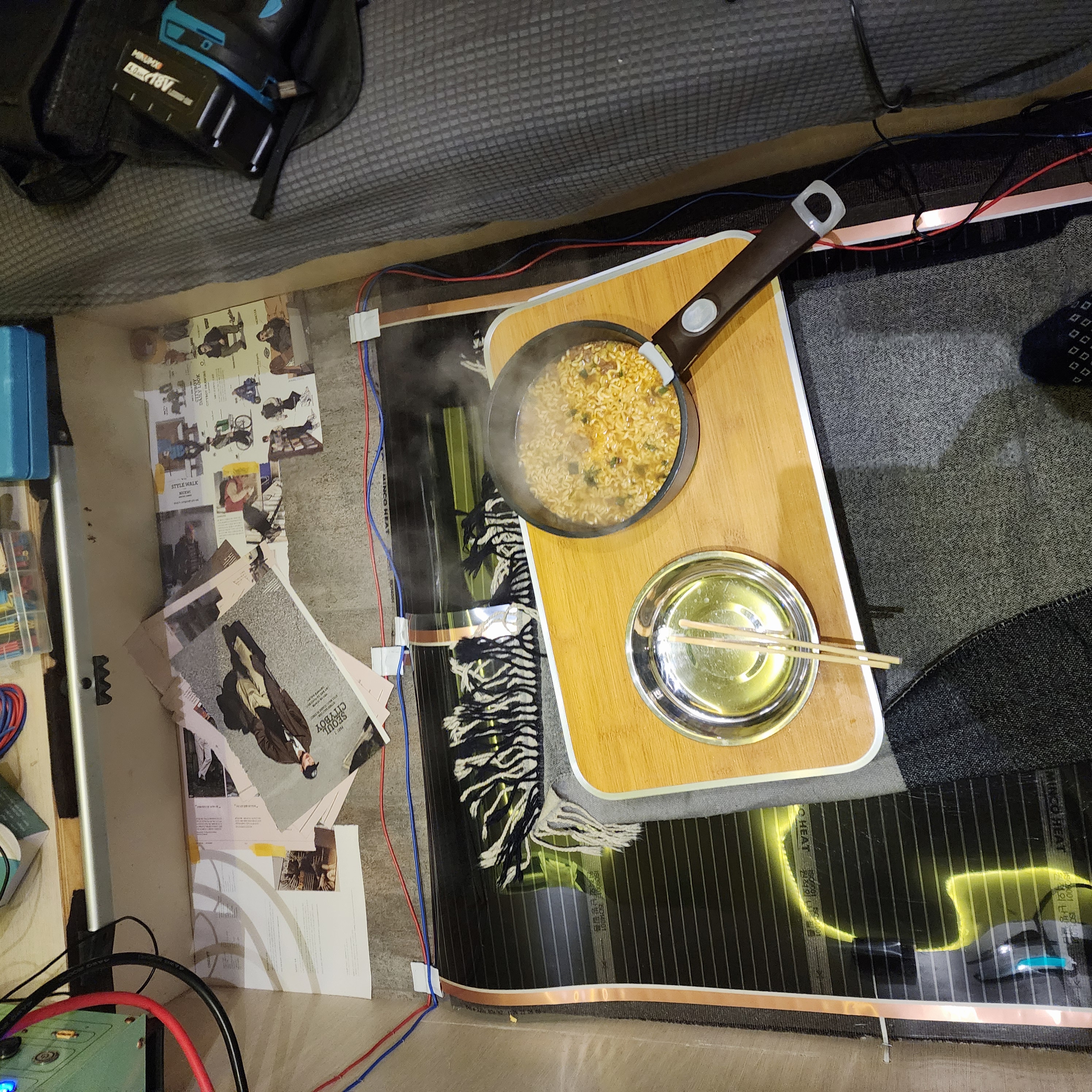 파트1에 썼지만, 내 카라반은 바닥난방이 없는 히터 형식의 난방이라 한 겨울에 발이 너무 시렵다. 그래서 작년에 타일매트를 사다 깔았는데, 겨울엔 어쩔수없이 넘나리 발이 시렵다. 그래서 바닥난방을 애진작에 알아봤는데, 어찌할 도리가 없어서 그냥 참고 살았다. 근데 알리에 필름난방지를 팔고 있는게 아닌가, 심지어 모듈도 무선이다. 대충 소비전력 계산해봤을때, 내 전기용량이면 이건 충분하다! 그래서 시작된것.