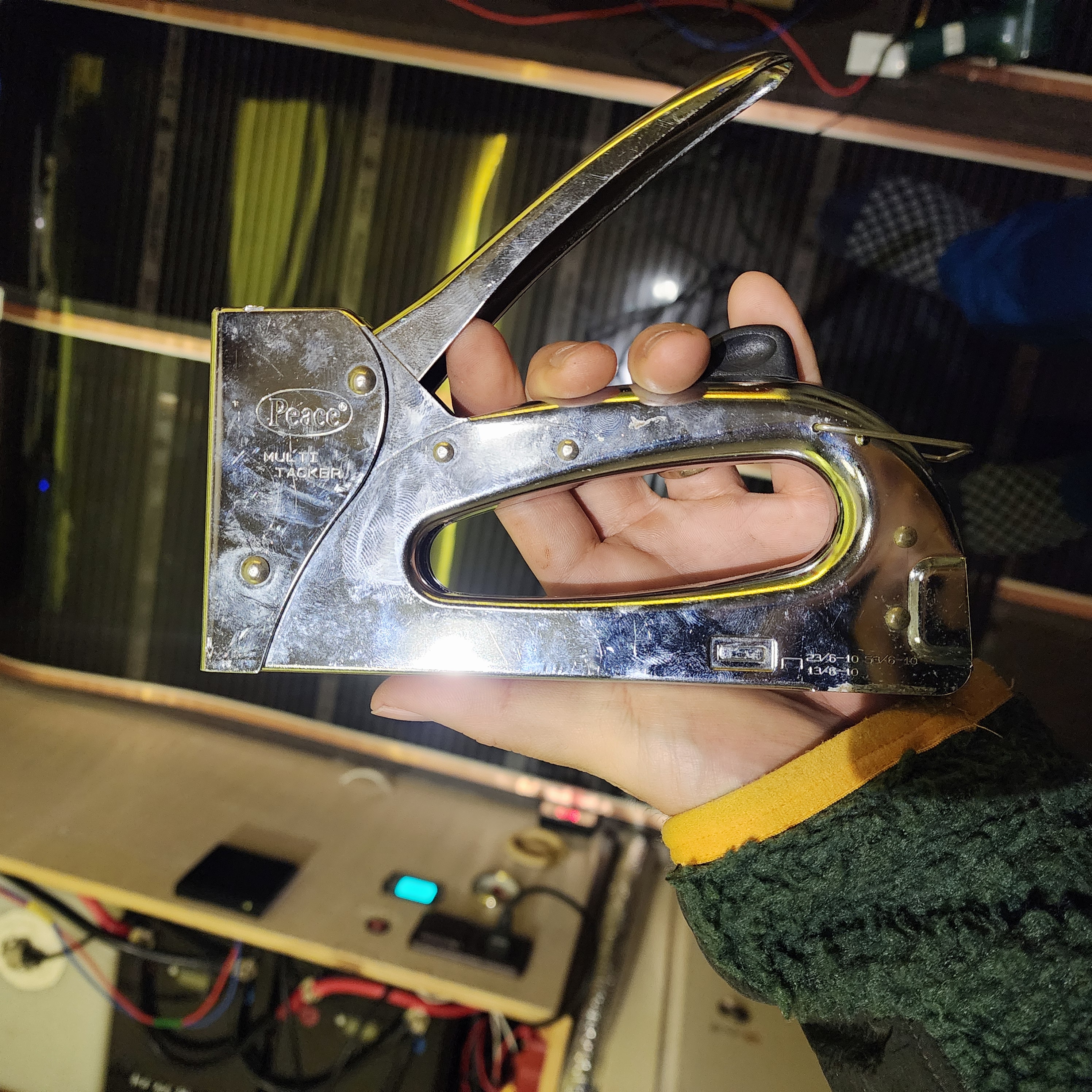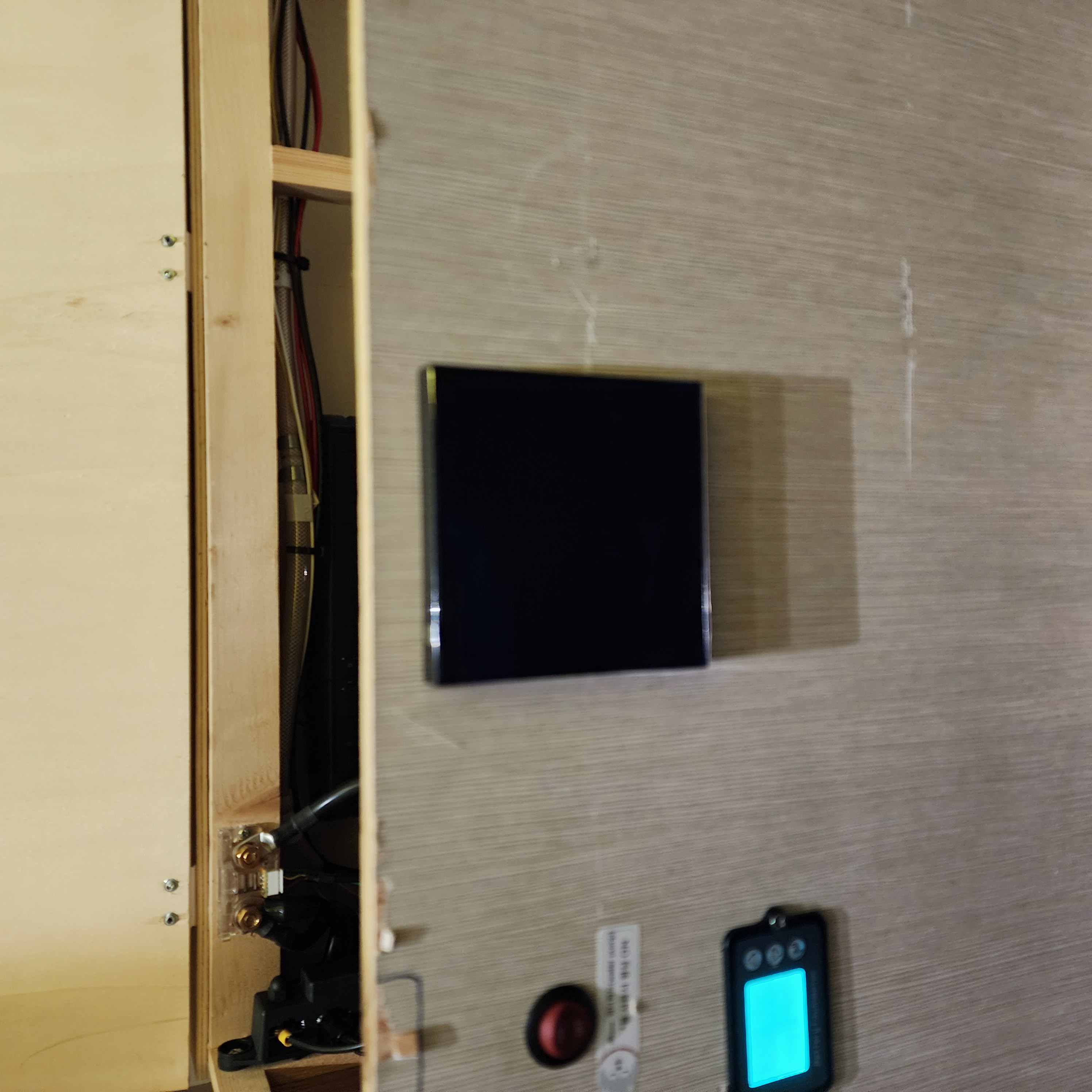 첫 번째 필름을 설치하고, 컨트롤러에 전원을 인가해봤다. 전원은 인산철 배터리에서 인버터를 통해 220v가 공급되게 연결.