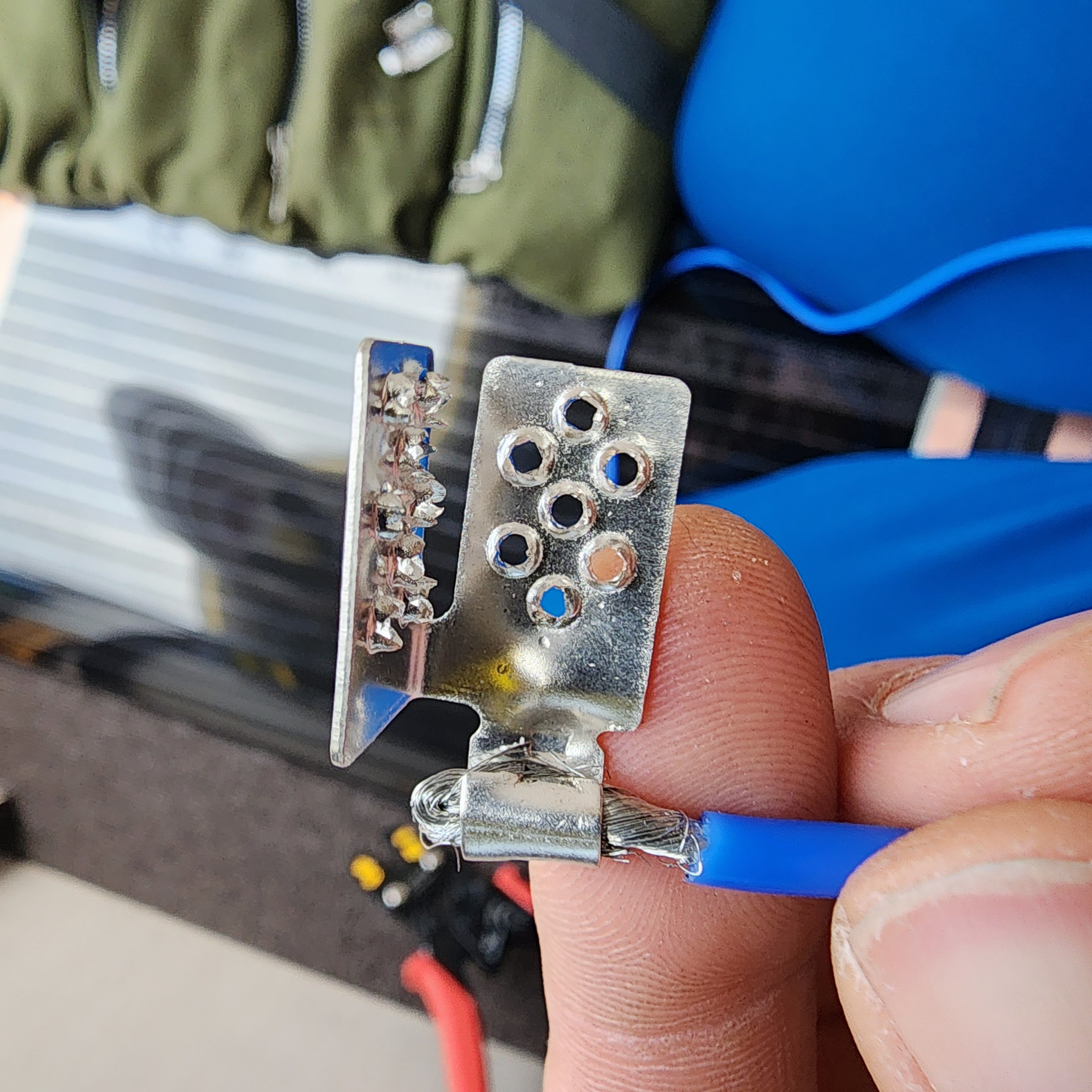 어떻게 전류를 흐르게 하는지 궁금했는데 커넥터가 날카로운 이빨같이 생겨서 꽉 찝어주면, 필름으로 덮여있는 부분을 뚫고 들어가 구리선 부분에 전류가 흐르게 하는 원리였음. 신기하도다.