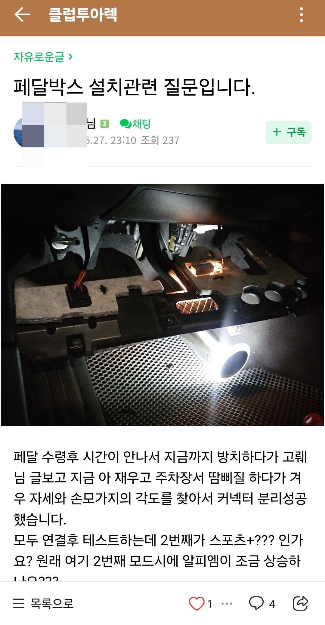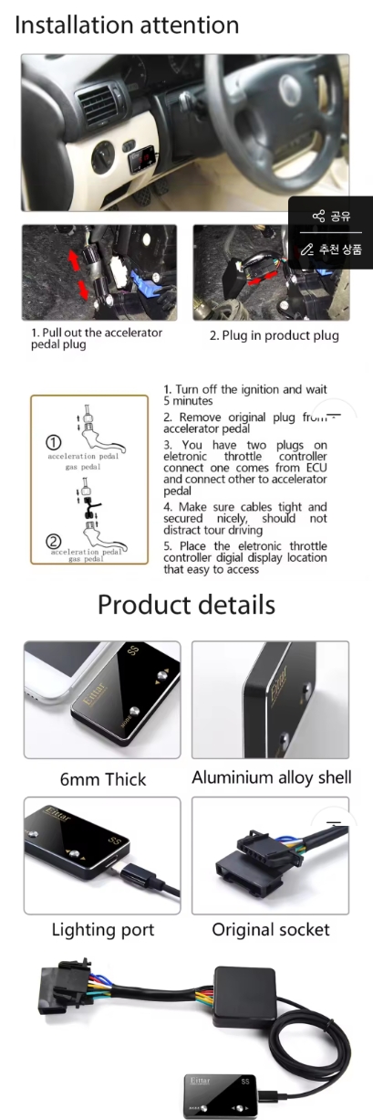 40 몇 만원하는 DTE 페달박스 말고, 7만원짜리 알리발 짭페달박스 설치기 끝.
