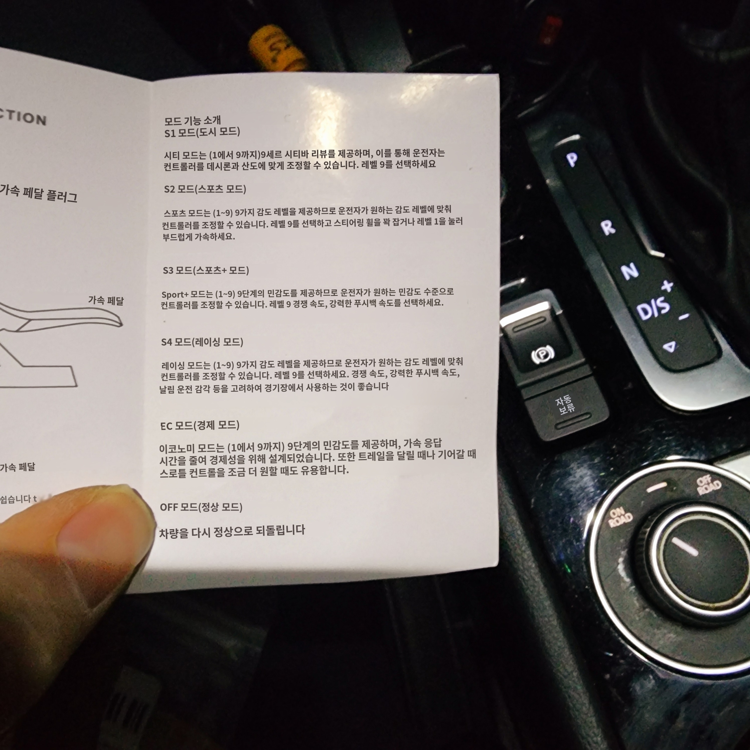 도심을 빠져나가면서 스포츠와 스포츠 플러스 모드를 사용했는데, 순식간에 80킬로 정도로 속도가 올라가서, 페달박스를 장착한 사람들이 "페달박스 다음은 브레이크 튜닝이다"란 말이 헛말이 아니었구나 실감.